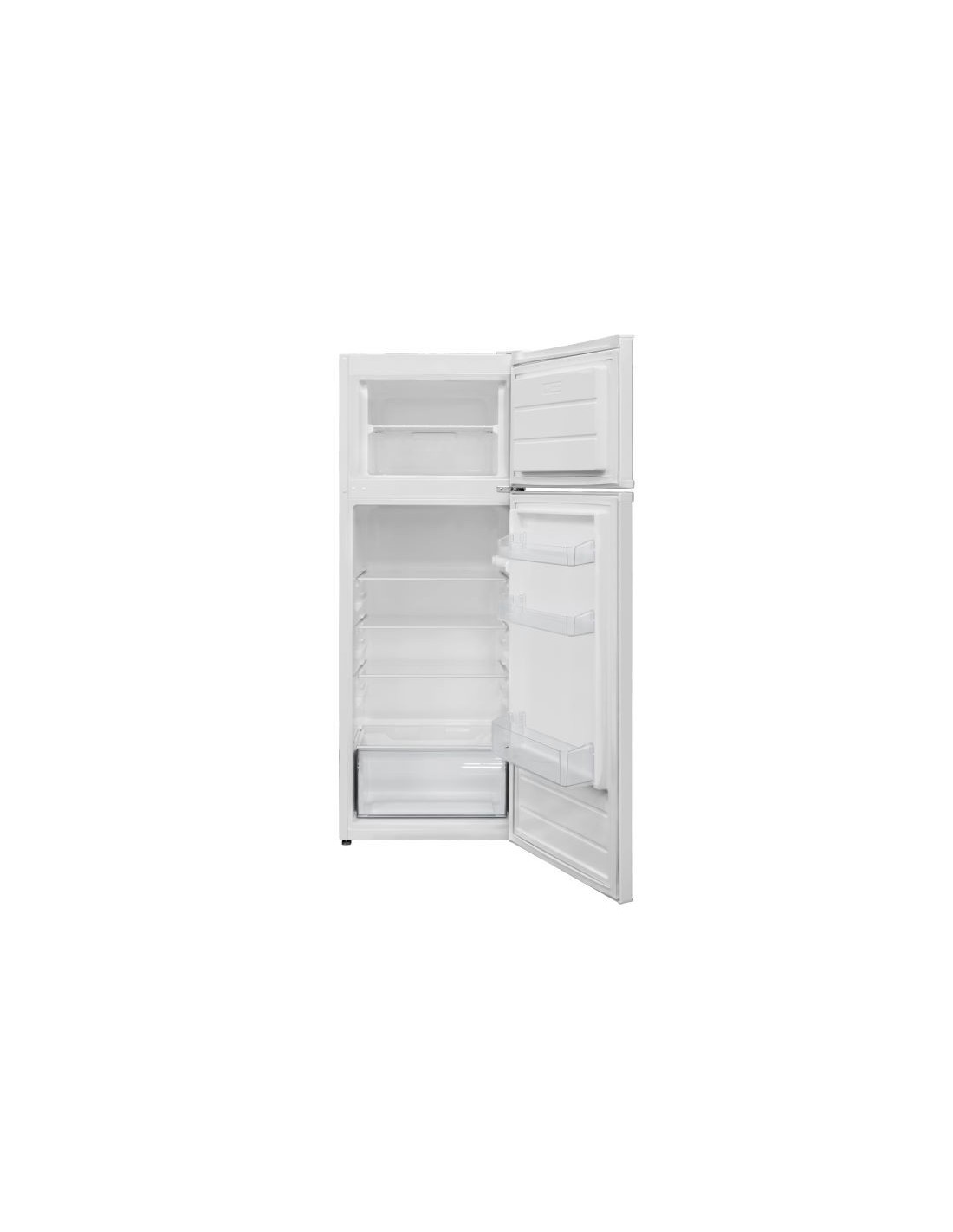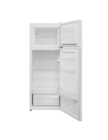 Frigorífico 2 puertas Medidas alto/ancho/fondo 1440 x 540 x 570 mm Clasificación energética E Volumen total (bruto/neto): 216/213 L Volumen refrigerador (bruto/neto): 173/171 L Volumen congelador (bruto/neto): 43/41 L Capacidad de congelación 2 Kg/24 Hr Descongelación frigorífico automática Descongelación congelador manual Nivel sonoro 41 dB Control mecánico con termostato Sistema LessFrost menos hielo y escarcha 3 Balcones en puerta. 1 botellero 3 Bandejas de cristal seguridad en frigorífico Tipo de gas refrigerante R600a Cajón verdulero sin escalón mayor capacidad Puertas reversibles Ruedas traseras Color Blanco